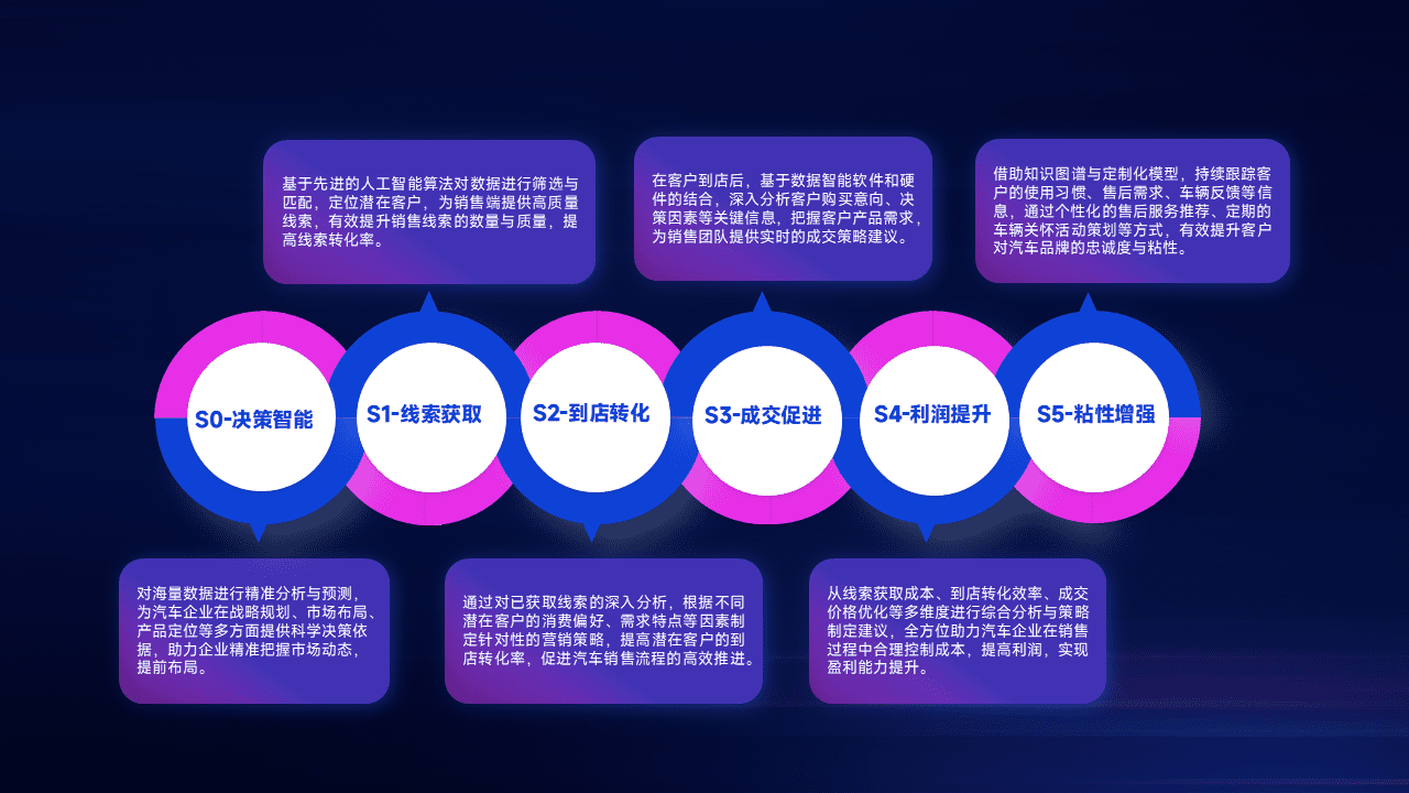通过拓宽潜在客户来源、、、、优化线索分配并提高到店转化率,,,,以增强销售效率。。。同时,,利用线索数据不断优化分析模型,,有效提升转化率,,扩大营销影响力。。。